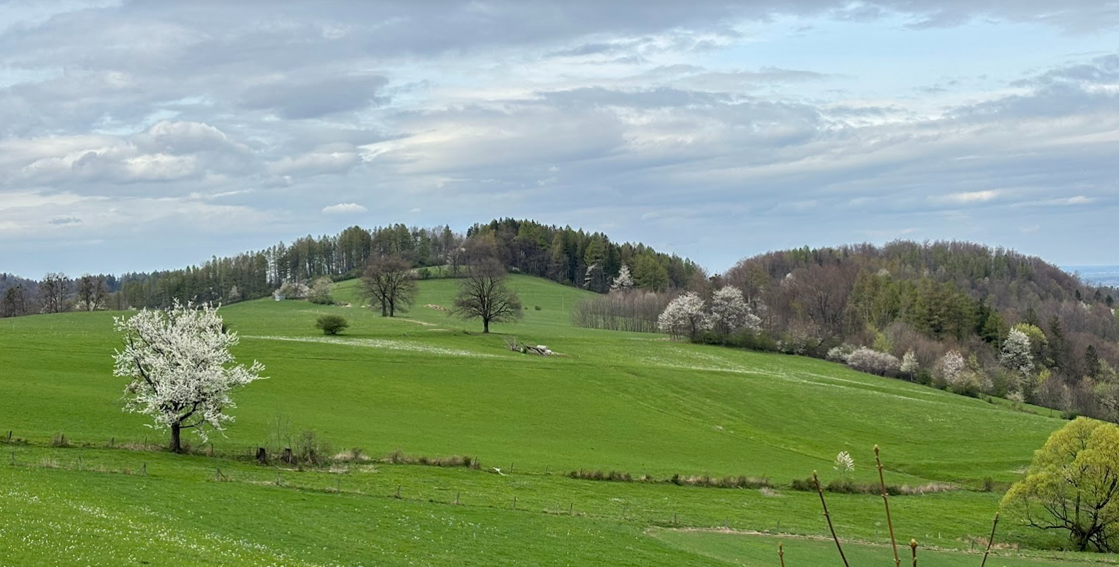 Idąc na północ, po lewej stronie mieliśmy widoki na czeski Beskid Śląsko-Morawski. Na północnym-zachodzie rysowały się Sudety. Może nie są to jakieś bardzo spektakularne widoki, ale ten szlak jest bardzo przyjemny i relaksujący. Na dodatek, poza paroma zagubionymi uczestnikami biegu na orientację, nie spotkaliśmy żadnych innych turystów.