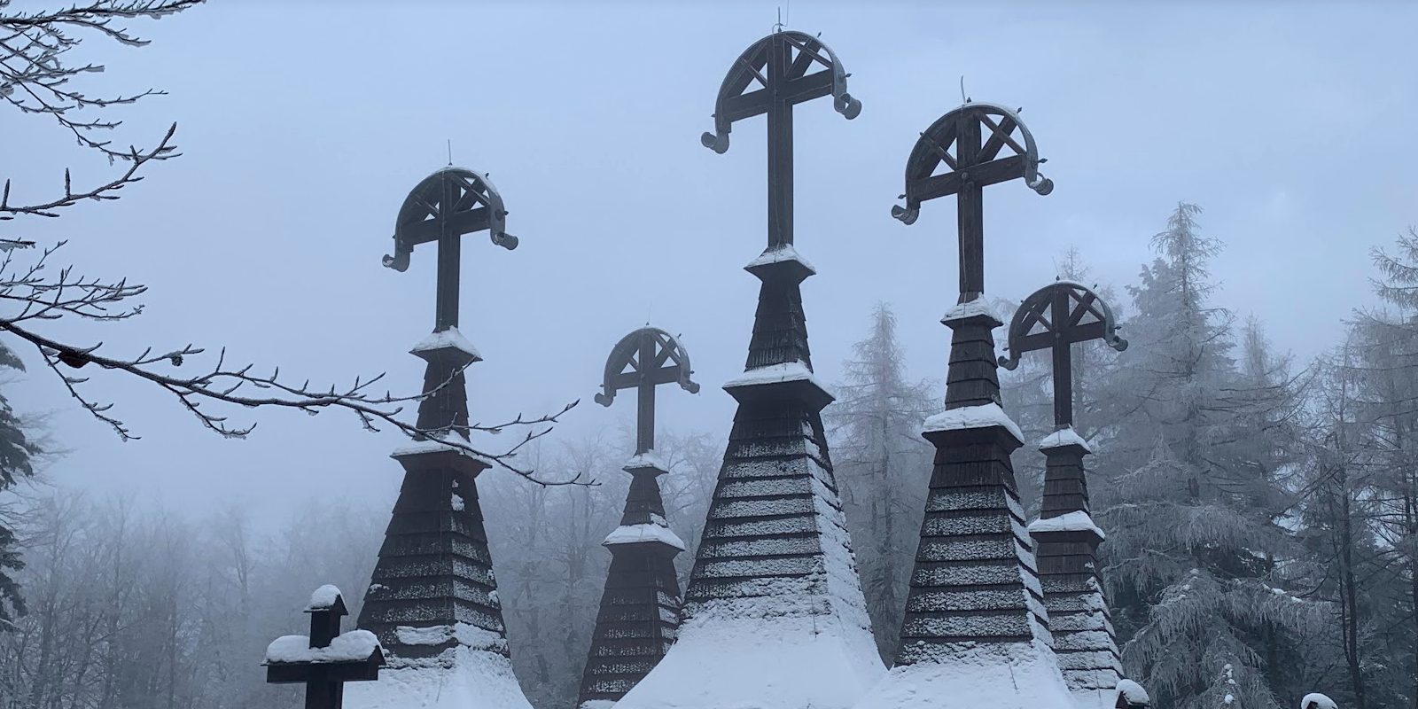 Cmentarz nr 123 zaprojektował polski architekt Jan Szczepkowski. Nekropolia jest pięknie wkomponowana w wzgórze. Centralnym elementem jest drewniana gontyna projektu... Dušana Jurkoviča. Poniższe dwa zdjęcia pokazuje dlaczego chciałem trafić tutaj o zachodzie słońca.