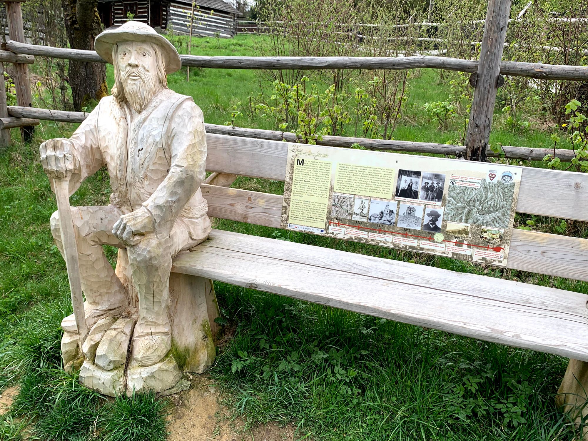 Na sam koniec spotkaliśmy Wawrzyńca Szkolnika. Siedział na ławce, zapatrzony w góry. Mało rozmowny, ale dowiedzieliśmy się, że był miejscowym gawędziarzem, przewodnikiem i nauczycielem.