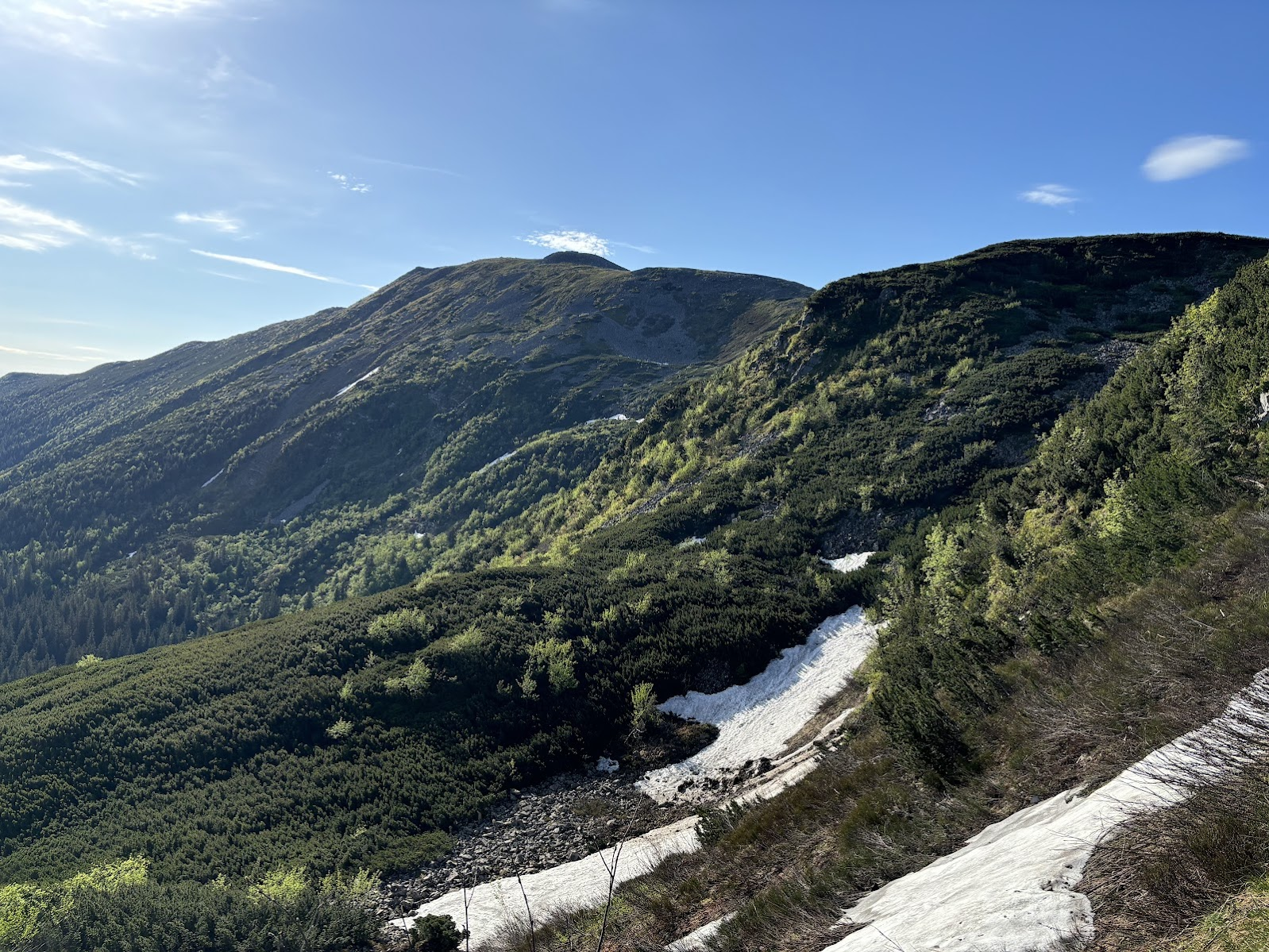 Polica chyba mnie lubi, bo zawsze gdy tu jestem jest dobra pogoda. Tym razem jednak nie zabawiłem na szczycie długo. W prognozie były burze na popołudnie i chcieliśmy ich uniknąć. Zatrzymaliśmy się na krótko w Schronisku na Hali Krupowej (które w rzeczywistości jest na Hali Kucałowej..) i rozpoczęliśmy wyścig z burzą.