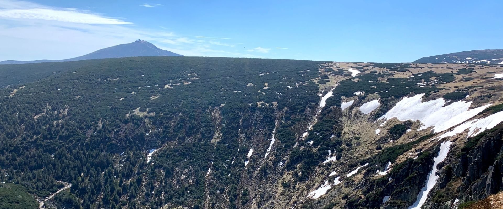 Szczyt Śnieżki, podobnie jak Babiej Góry, jest pozbawiony roślinności. To oznacza widoki "że hej". Widoczność dochodzi do 200km. Ale także wystawienie na (nie)łaskę pogody. Nawet w słoneczny dzień temperatura odczuwalna będzie o kilkanaście stopni niższa niż w Karpaczu. Śnieżka charakteryzuje się dużymi dobowymi skokami ciśnienia i porywistym wiatrem.