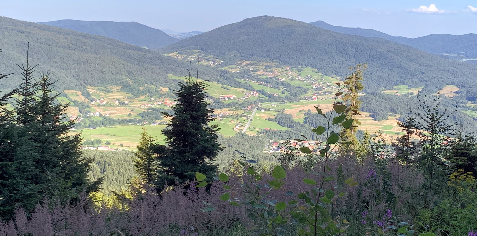 Po słodkim lenistwie ciężko się zmobilizować. Czeka mnie podejście w popołudniowym upale na Lubogoszcz - spora część w odkrytym terenie. Tu z kolei pociesza mnie, że jak przeżyję nasłonecznione łąki i pola, to dalej będę miał bardzo długi odcinek grzbietem Lubogoszczy w lesie. A potem, jak zejdę do Kasiny Wielkiej, to słońce będzie schowane za Lubogoszczem (używamy męskiej formy).