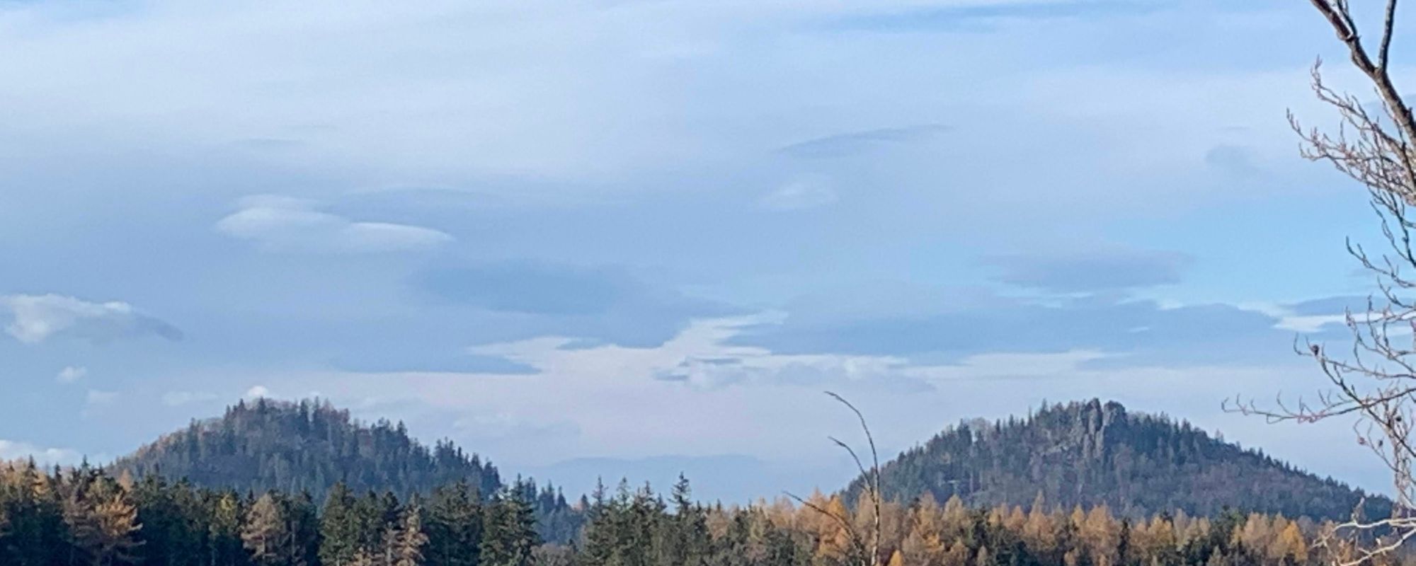 "Piersi Lollobrigidy" czyli Góry Sokole są dwie. Pora na drugą - Sokolik Duży. Prowadzi nań szeroka droga przez las. Łatwa bo wspinamy się zakosami. A na szczycie niespodzianka. Kręte, metalowe schody pozwalają wspiąć się na sporą wychodnię skalną.