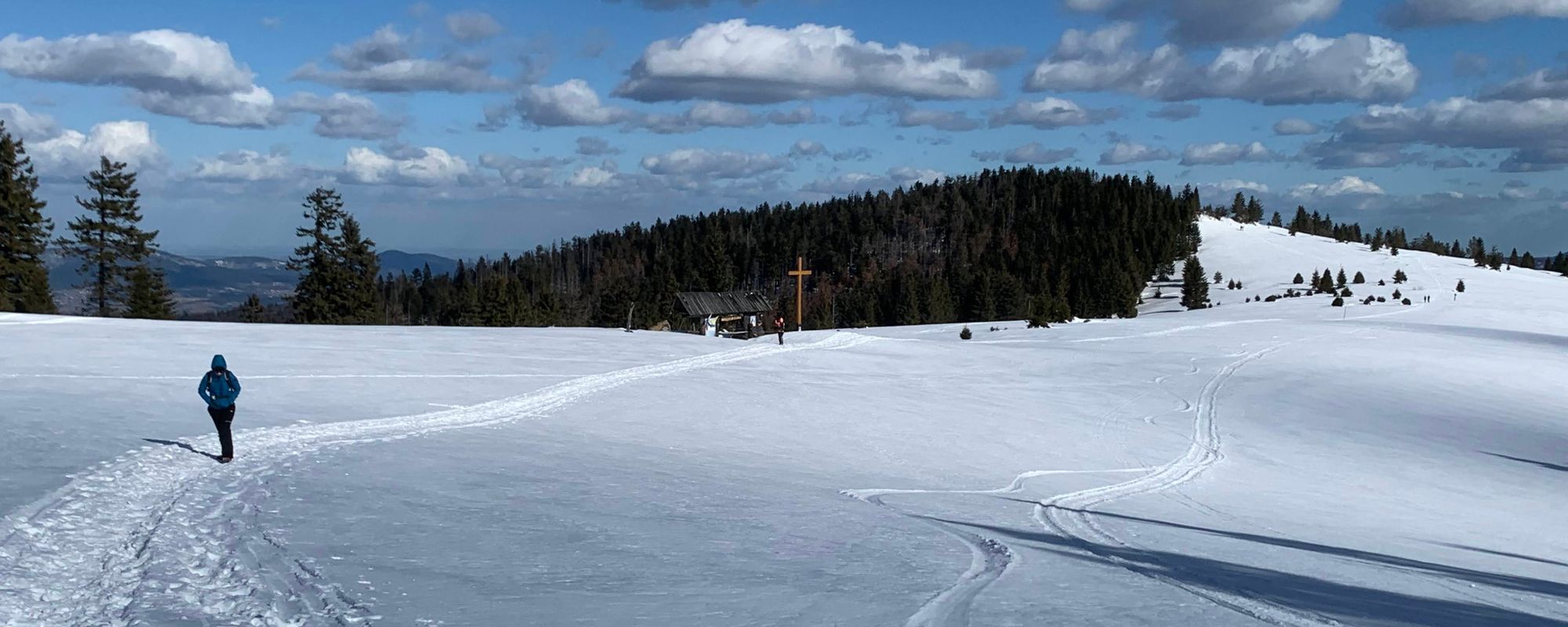 [POL] Szlak z Turbacza na Obidowiec prowadzi szeroką drogą. Zimą jest ratrakowany dla narciarzy biegowych. Sama przyjemność wędrowania. Taka, że poszliśmy za daleko i trzeba było trochę wrócić.
